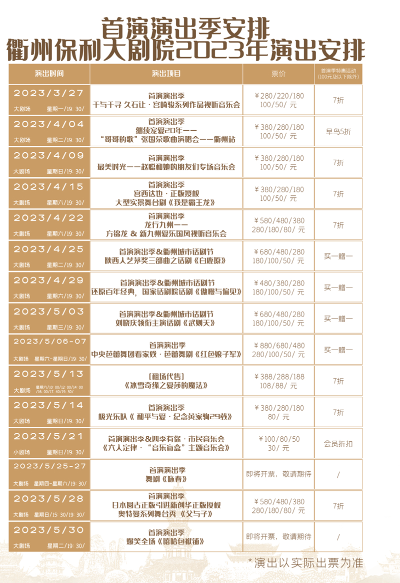 附:2023年开业首演季特惠、演出安排
